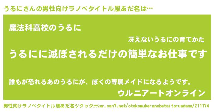 うるにさんの男性向けラノベタイトル風あだ名をツクッター!