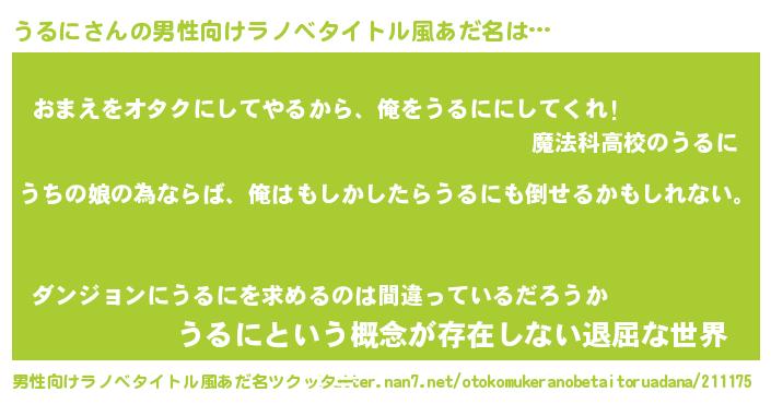 | 女子向けラノベタイトル風あだ名 | 『うるにの婚約者』 |