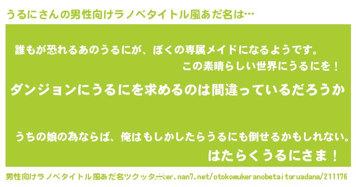 | 胡散臭い通販商品みたいなあだ名 | 『信頼と実績のネックレス…その名も「うるに」』 |