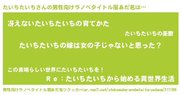 | 伝説のあだ名 | 『覚醒した遊び人たいちたいち』 |