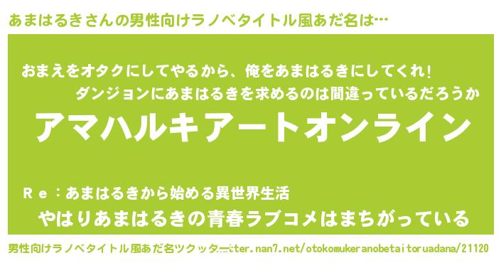 | 意味不明あだ名 | 『ペロリンあまはるき』『自称あまはるき』 |