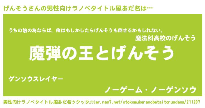 | ヒーロー風カッコイイあだ名 | 『仮面ゲンダー』『ウルトラげんそうマン』 |