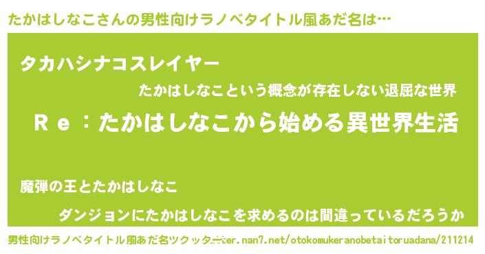 | 意味不明あだ名 | 『自称たかはしなこ』 |
