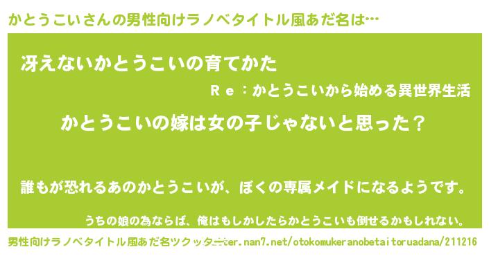 | 女子向けラノベタイトル風あだ名 | 『かとうこいの卵を拾いまして』 |