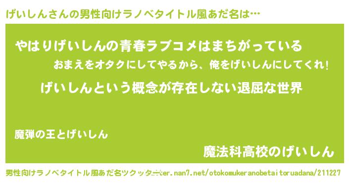 | ヘコむあだ名 | 『げいしん(笑)』『なまこ酢』 |