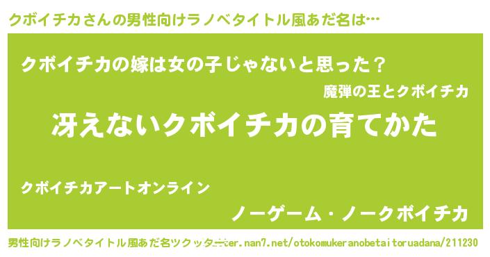 | 意味不明あだ名 | 『とにかく怪しいクボイチカ』 |