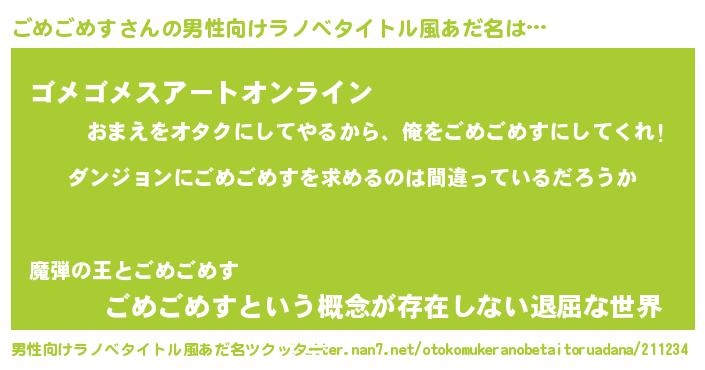 | 女子向けラノベタイトル風あだ名 | 『ごめごめすの卵を拾いまして』 |