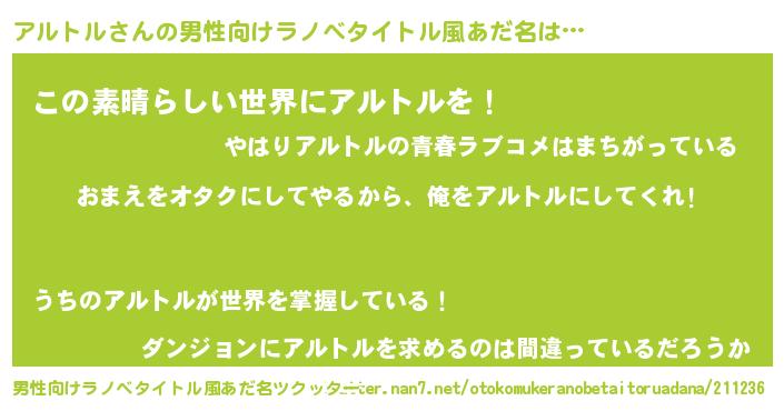 | 女子向けラノベタイトル風あだ名 | 『アルトル夫妻のなれそめ』 |