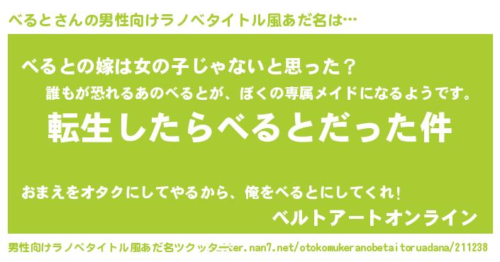 | 女子向けラノベタイトル風あだ名 | 『婚約破棄系悪役べるとに転生したので、保身に走りました。』 |