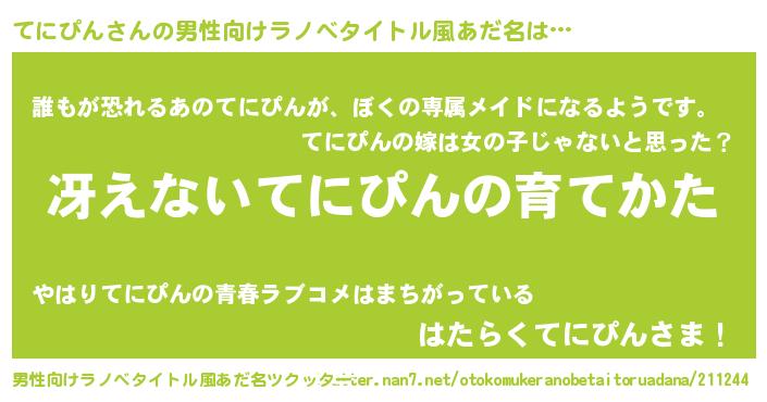 | 意味不明あだ名 | 『永久保存てにぴん』『自称てにぴん』 |