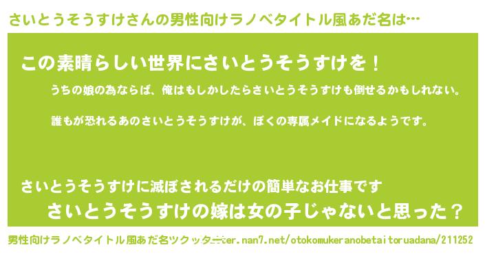 | 意味不明あだ名 | 『永久保存さいとうそうすけ』 |