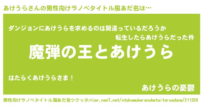 | 意味不明あだ名 | 『住所不定無職あけうら(53歳)』 |