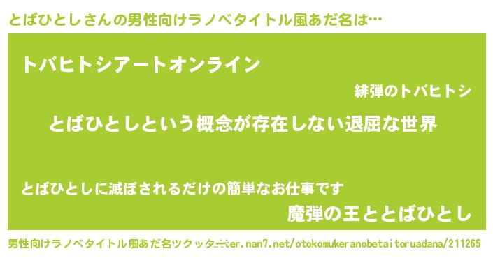 | ヘコむあだ名 | 『とばひとし(遠い目)』『とばにゅー』 |