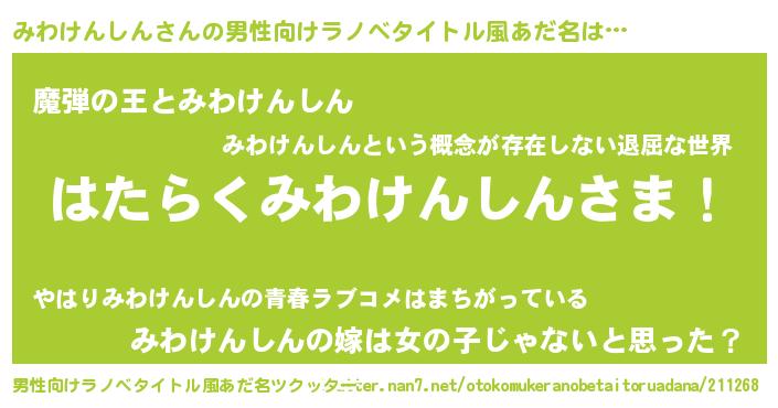 | 胡散臭い通販商品みたいなあだ名 | 『ハリウッド女優が絶賛した100年もののヴィンテージワイン…その名も「みわけんしん」』 |