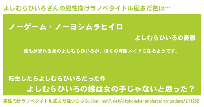 | ヘコむあだ名 | 『よしむらひいろ(笑)』『よしぷりん』 |