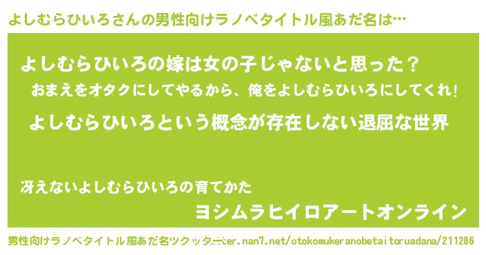 よしむらひいろさんの男性向けラノベタイトル風あだ名をツクッター!