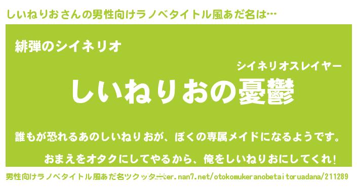 しいねりおさんの男性向けラノベタイトル風あだ名をツクッター!