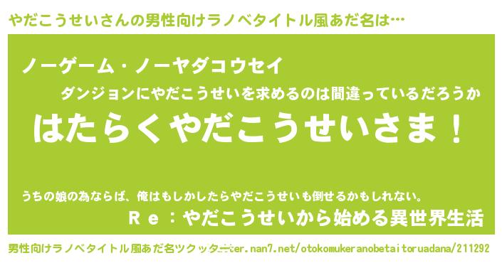 | 胡散臭い通販商品みたいなあだ名 | 『100人中100人が認めたマグネット磁石…その名も「やだこうせい」』 |