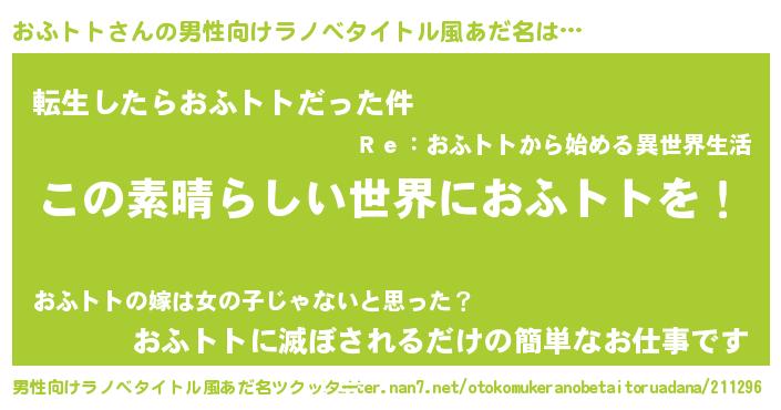| 意味不明あだ名 | 『住所不定無職おふトト(9歳)』 |