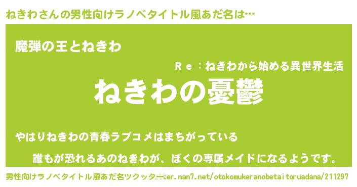 | 女子向けラノベタイトル風あだ名 | 『(仮)ねきわのやんごとなき事情』 |