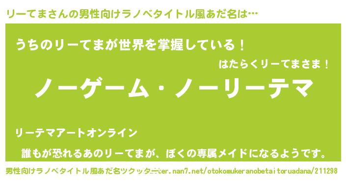 | ヘコむあだ名 | 『リーてま(小並感)』『リーにゅー』 |