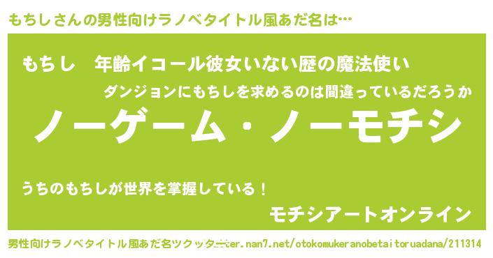 | ヘコむあだ名 | 『もちもー』『もちお』『酢こんぶ』 |