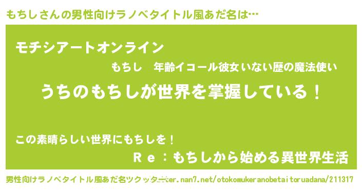 | 胡散臭い通販商品みたいなあだ名 | 『億万長者になれる霊験あらたかなお札…その名も「もちし」』 |
