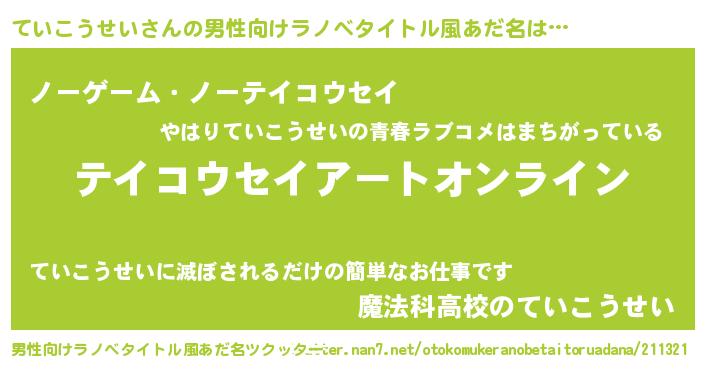 | 胡散臭い通販商品みたいなあだ名 | 『モテモテ間違いなし水晶球…その名も「ていこうせい」』 |