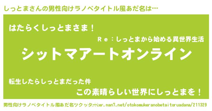 | 女子向けラノベタイトル風あだ名 | 『しっとま姫と円卓の騎士』 |