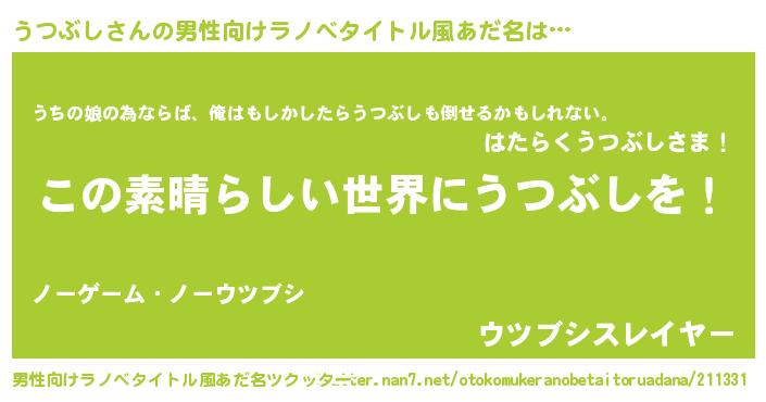 | 胡散臭い通販商品みたいなあだ名 | 『あなたにだけ特別に提供する100年もののヴィンテージワイン…その名も「うつぶし」』 |