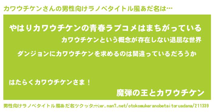| ポケモン風あだ名 | 『ヒカワウチケン』『カワウダネ』 |