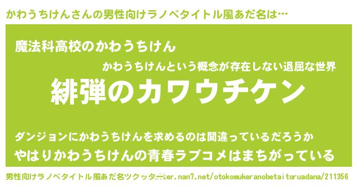 | 意味不明あだ名 | 『自称かわうちけん』 |