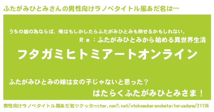 | ヒーロー風カッコイイあだ名 | 『スーパーフタガミヒトミ』 |