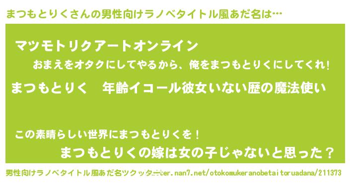 | 女子向けラノベタイトル風あだ名 | 『まつもとりくの玉の輿計画!』 |