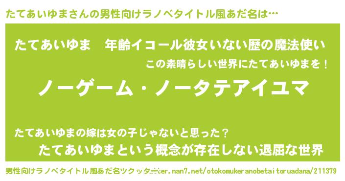| 女子向けラノベタイトル風あだ名 | 『死神たてあいゆまの再婚』 |