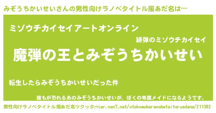みぞうちかいせいさんの男性向けラノベタイトル風あだ名をツクッター!