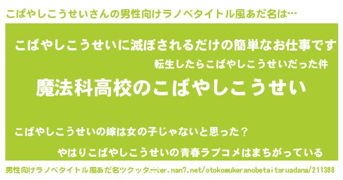 | 女子向けラノベタイトル風あだ名 | 『こばやしこうせいなんてお断りですっ。』 |