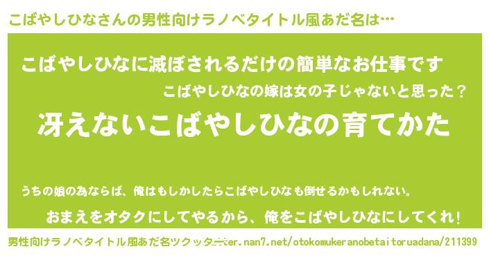 | 女子向けラノベタイトル風あだ名 | 『男装こばやしひなの憂鬱な任務』 |