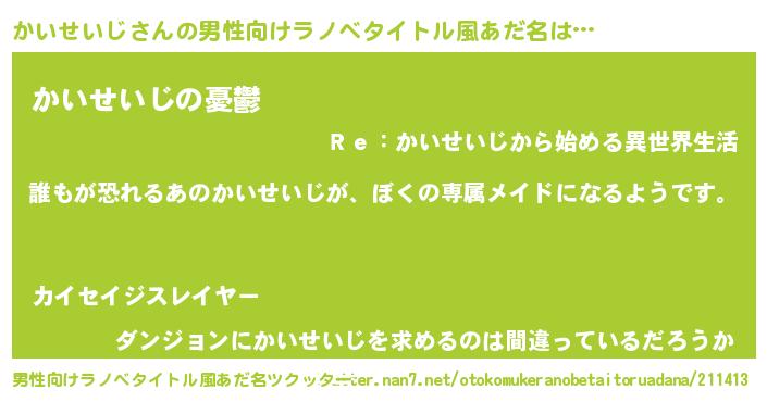 | ヘコむあだ名 | 『かいせいじ(爆)』『かいふぇ~』 |