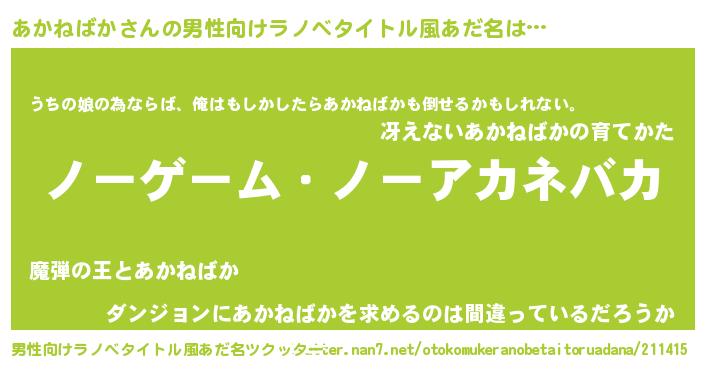 | 胡散臭い通販商品みたいなあだ名 | 『モンドセレクションを受賞したイリジウム磁石…その名も「あかねばか」』 |