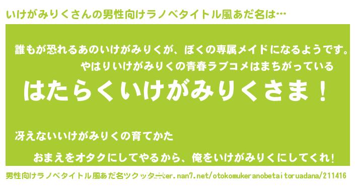 | 欧米人風あだ名 | 『アンジェラ・いけがみりく』 |