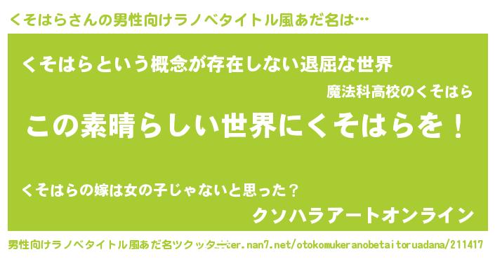| 意味不明あだ名 | 『住所不定無職くそはら(74歳)』 |