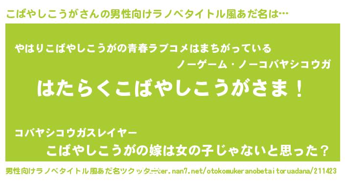 | ファンタジー風あだ名 | 『エターナルコバヤシコウガー』 |