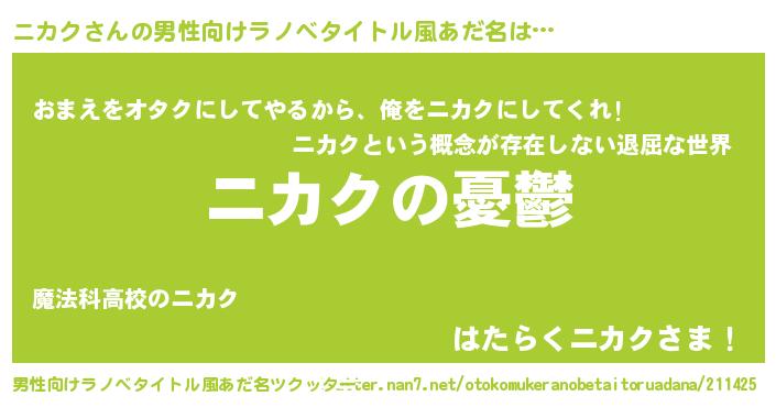 ニカクさんの男性向けラノベタイトル風あだ名をツクッター!