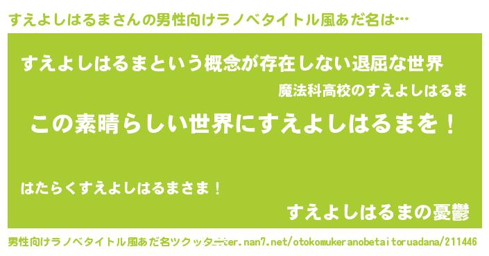 | 女子向けラノベタイトル風あだ名 | 『悪役すえよしはるまに転生したようですが、知った事ではありません』 |