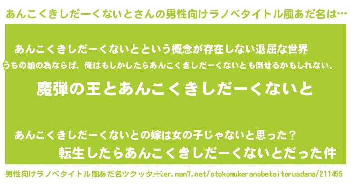 | 意味不明あだ名 | 『住所不定無職あんこくきしだーくないと(40歳)』 |