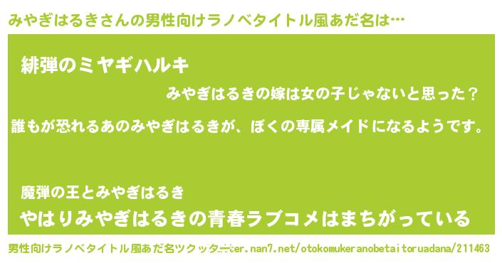 | 胡散臭い通販商品みたいなあだ名 | 『来世でも幸せになれる水素水…その名も「みやぎはるき」』 |