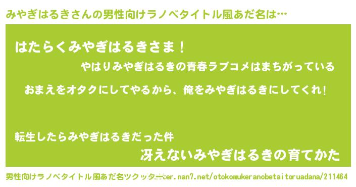 | 女子向けラノベタイトル風あだ名 | 『みやぎはるき恋絵巻』 |
