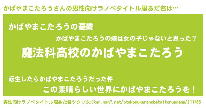 | 女子向けラノベタイトル風あだ名 | 『かばやまこたろうなんてお断りですっ。』 |