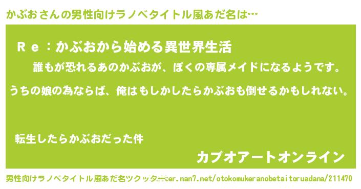 | 女子向けラノベタイトル風あだ名 | 『かぶお伯爵の花嫁』 |